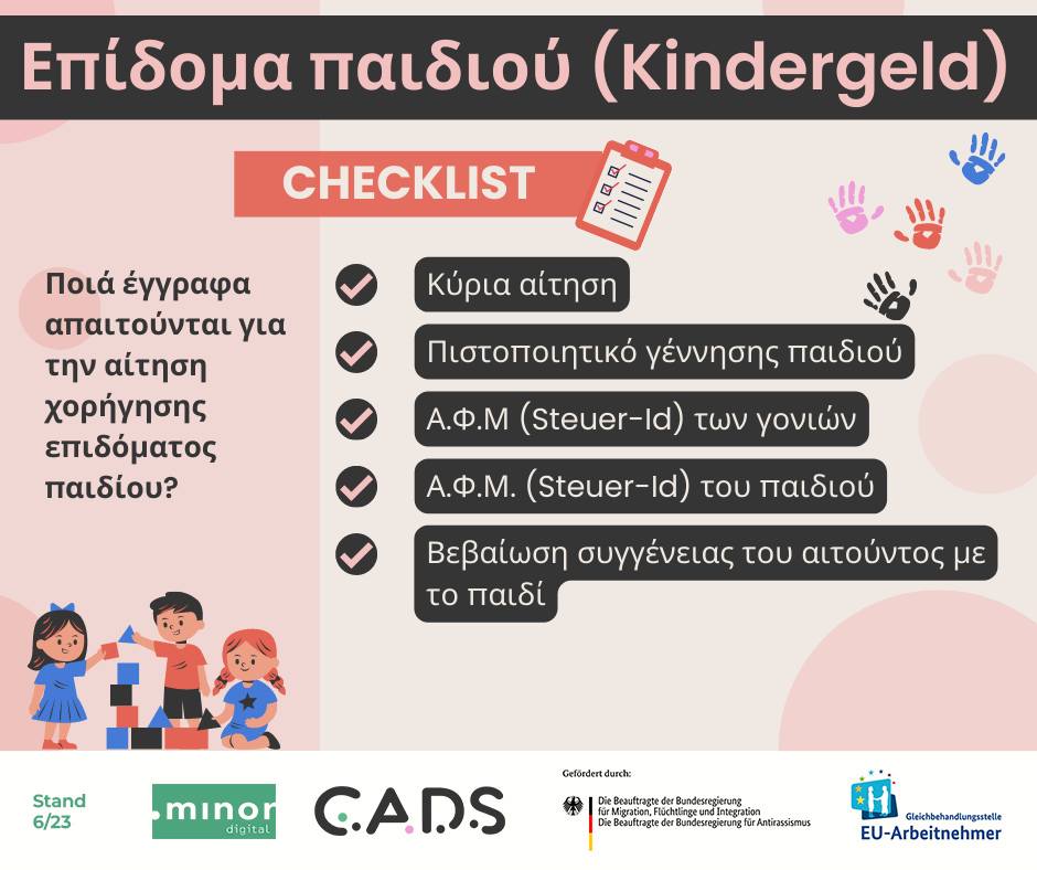 - Επίδομα παιδιού (βλ. CHECKLIST επιδόματος παιδιού (Kindergeld)