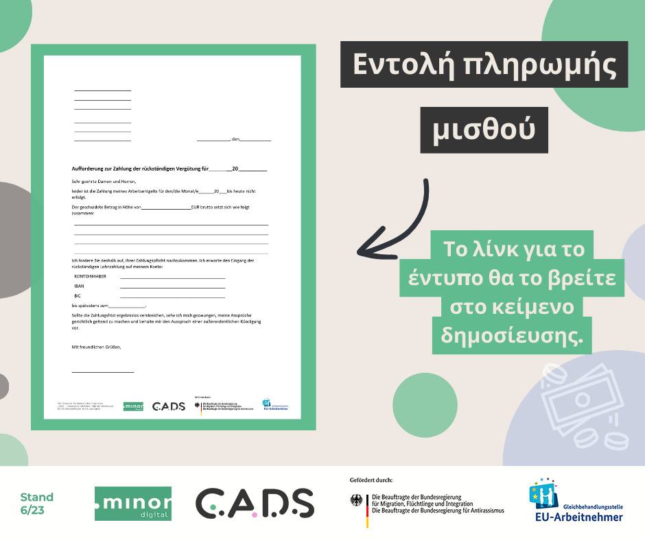 📨📜Για αυτό το σκοπό συνιστάται να αποσταλεί πρώτα μια εξώδικη επιστολή εντολής πληρωμής του μισθού. Σκοπός της επιστολής αυτής είναι η γρήγορη και ανέξοδη διεκδίκηση του οφειλόμενου χρηματικού ποσού πριν από τη λήψη άλλων μέτρων.
