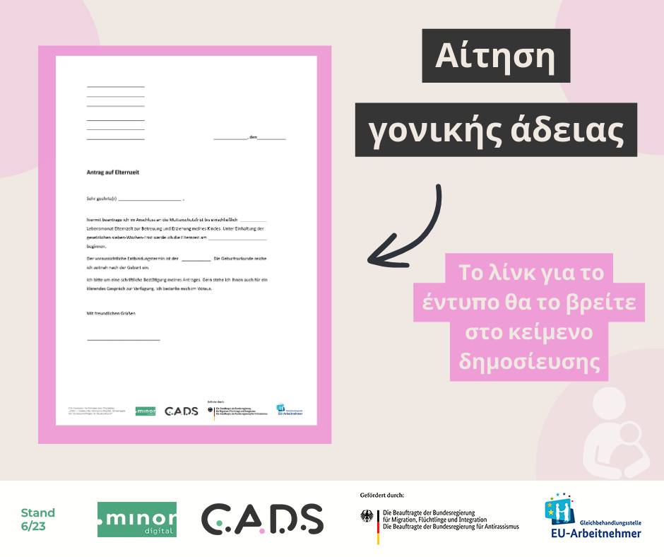 👶🧑🍼👩🍼Η γονική άδεια αποτελεί δικαίωμα του εργαζόμενου. Κατά τη διάρκεια της γονικής άδειας, απαλλάσσεστε από την εργασία σας και δεν λαμβάνετε καμία αμοιβή. Αντ’ αυτού λαμβάνετε το γονικό επίδομα (Elterngeld).