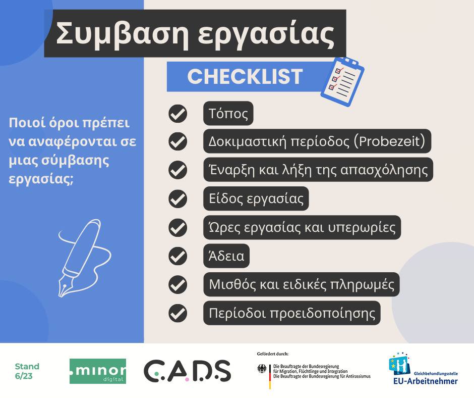 Η σύμβαση εργασίας θα πρέπει να αναφέρει την έναρξη της εργασιακής σχέσης. Από την ημερομηνία αυτή υφίστανται αμοιβαίες αξιώσεις μεταξύ εσάς και του εργοδότη.