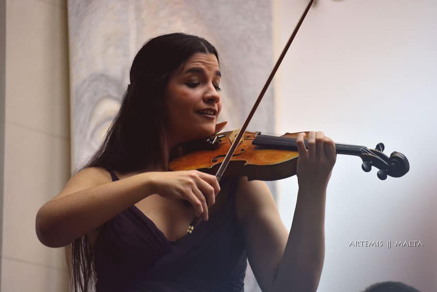 Η Δανάη Παπαματθαίου – Μάτσκε παίζει σε βιολί του Carlo Ferdinando Landolfi, Μιλάνο 1760.